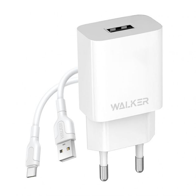 Мережевий зарядний пристрій (адаптер) WALKER WH-26 1USB / 2.1A + Type-C white