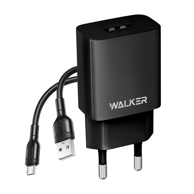 Зарядний пристрій мережевий USB + кабель MicroUSB 2,1А чорний WALKER WH--26