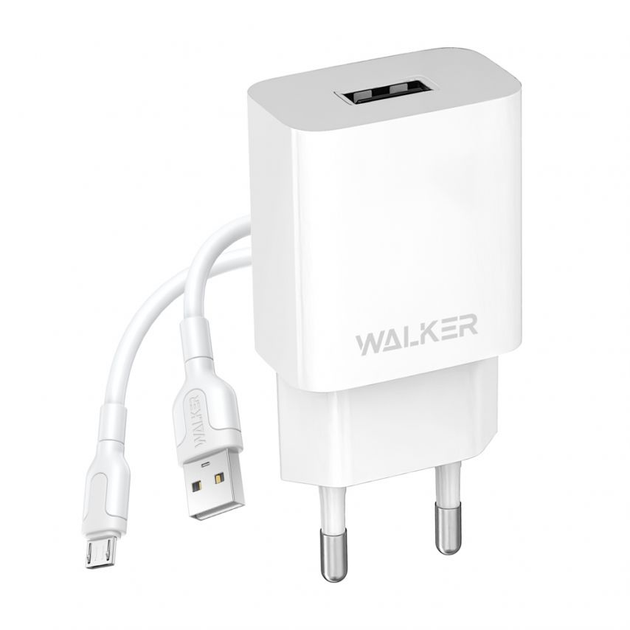 Мережевий зарядний пристрій (адаптер) 2в1 WALKER WH-26 1USB / 2.1A + Micro white