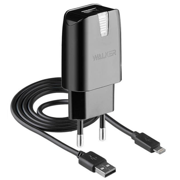 Мережевий зарядний пристрій (адаптер) 2в1 WALKER WH-21 1USB / 2A + Lightning black
