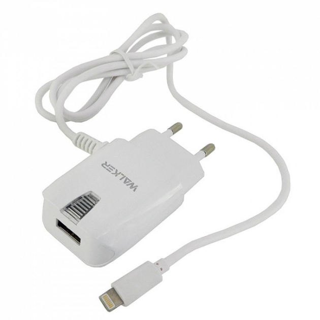 Мережевий зарядний пристрій (адаптер) 2в1 WALKER WH-21 1USB / 2A + Lightning white