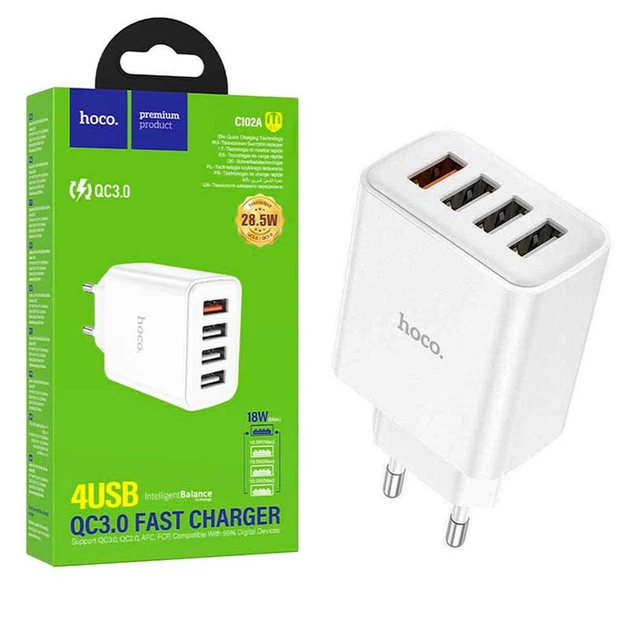 Зарядний пристрій Hoco C102A Fuerza (4 USB, Quick Charge 30) / Адаптер для заряджання / Блок живлення