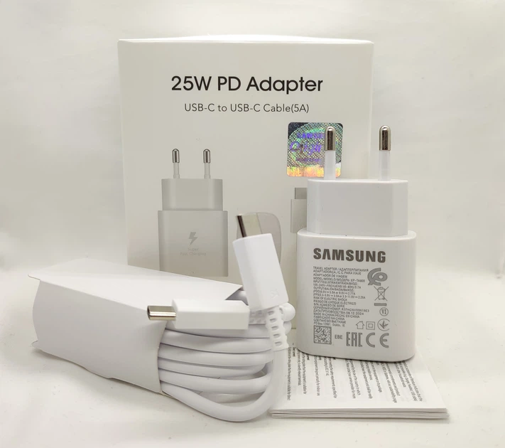 Зарядний пристрій для Samsung 25W PD плюс кабель 5A Type-C to Type-C / білий / швидка зарядка