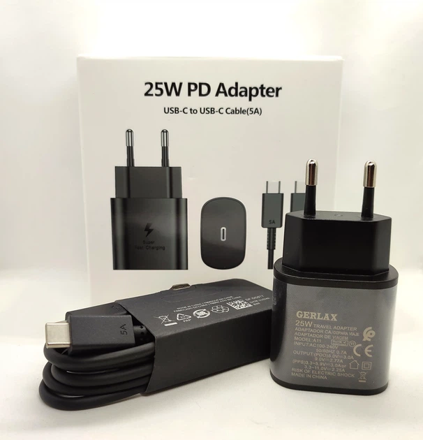 Зарядний пристрій блок для Samsung 25W PD чорний швидка зарядка + кабель Type-C to Type-C 5A