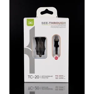АЗП DC 2в1 Lightning PD/30W+QC3.0/24W Fast Charger (TC-20) чорний UA