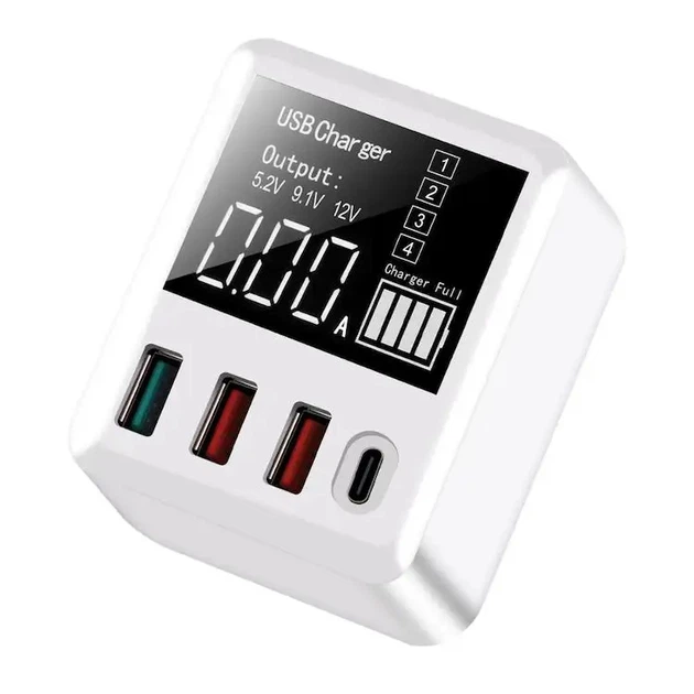 Зарядний пристрій 40W USB на 4 порти з LED дисплеєм Блок живлення USB Швидка зарядка