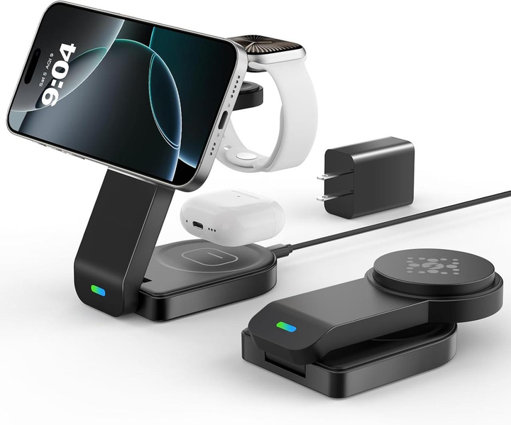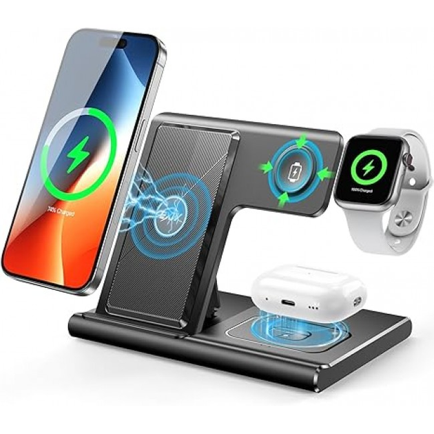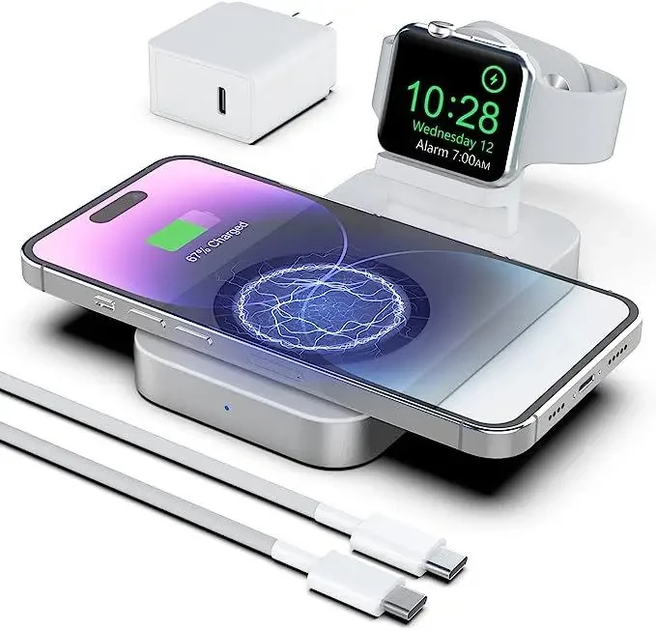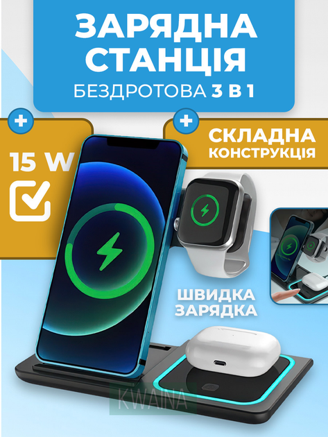 Бездротова зарядна станція 3 в 1 на 15Вт, складна одночасно заряджає смартфон, смарт-годинник та бездротові навушники