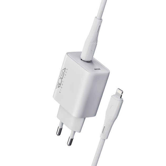 Сітчастий зарядний пристрій Ridea RW-20125 Rapid Pro 1USB-C QC/PD 20W+Type-C to Lightning Колір Білий