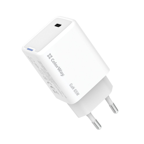 Зарядний пристрій мережевий Type-C PD 65W білий GaN Mini ColorWay