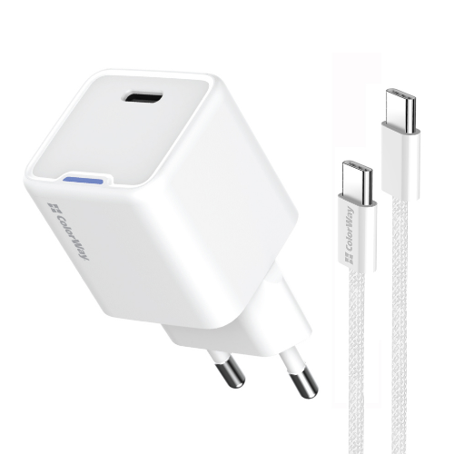 Зарядний пристрій мережевий Type-C + кабель Type-C PD 25W білий GaN Mini ColorWay