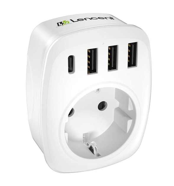 Адаптер розетки USB Lencent 5в1 з 3 портами зарядного пристрою Білий