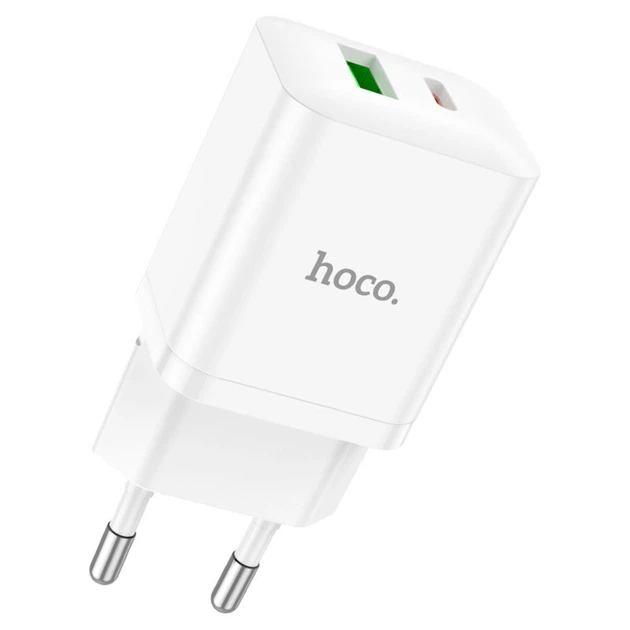 Зарядний пристрій HOCO, Power Delivery 20W, Quick Charge 3.0, 1xUSB, 1xType-C, білий