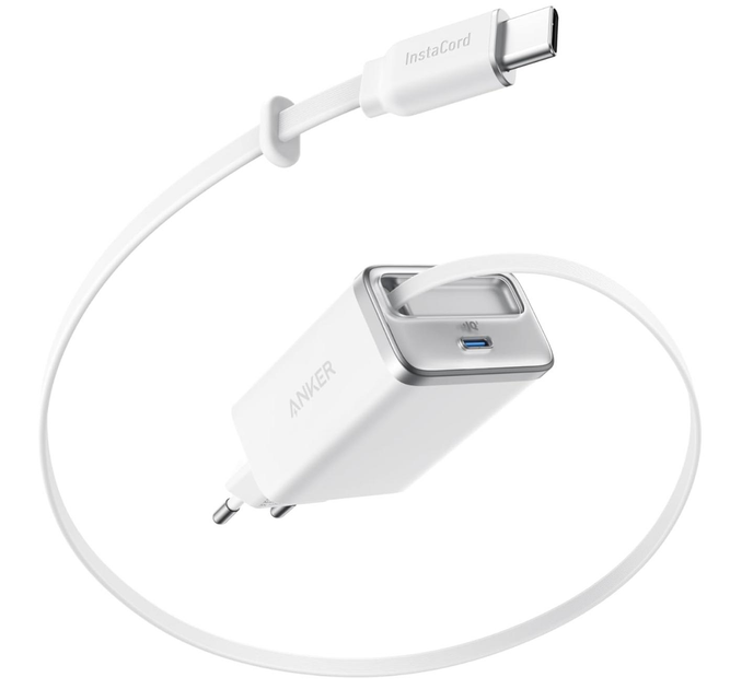 Мережевий зарядний пристрій Anker Nano USB-C 35W компактний високошвидкісний блок живлення з вбудованим кабелем - White