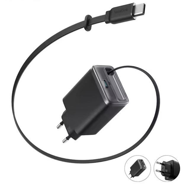 Мережевий зарядний пристрій Anker Nano USB-C 35W компактний високошвидкісний блок живлення з вбудованим кабелем - Black