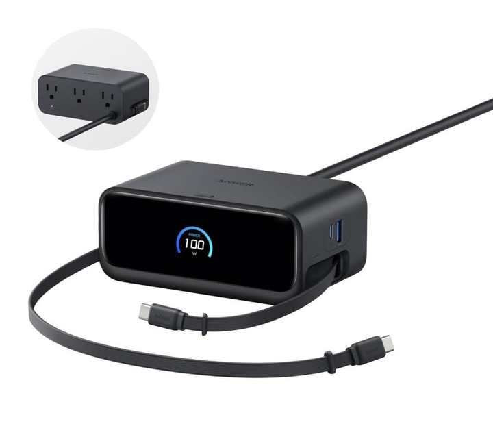 Зарядний пристрій Anker Nano Charging 7-in-1 USB-C 100 Вт швидка настільна зарядка з дисплеєм - Black