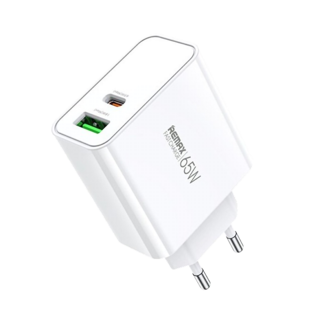 Мережевий зарядний пристрій Remax Kiddy 2 порти, USB + Type-C 65W (RP-U125)