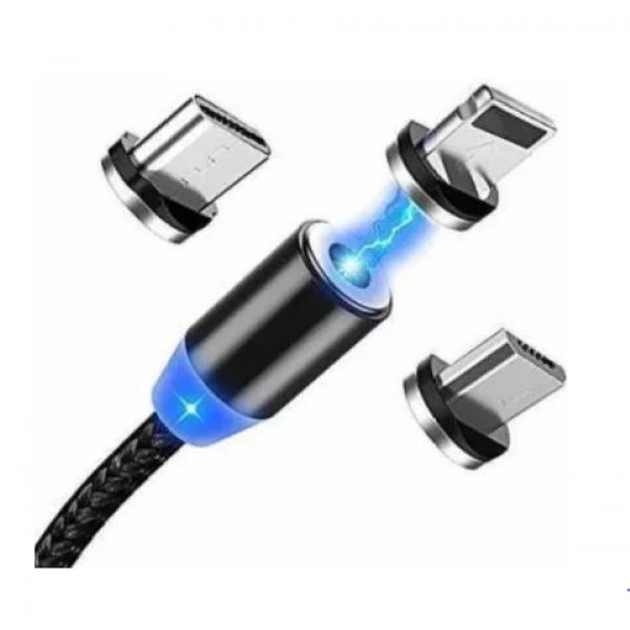 Магнітний кабель зарядки 3 в 1 із круглим роз'ємом micro USB, Type C, lightning