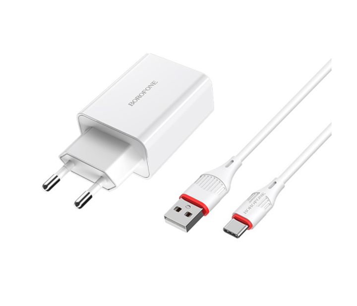 Набір BOROFONE BA21A СЗУ+ кабель Type-C, 1xUSB, 3A, кабель 1м, White, Blister