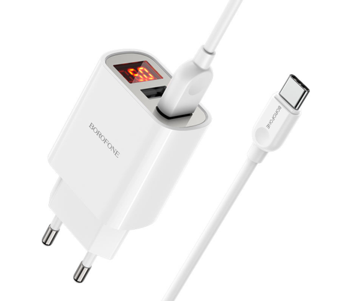 Набір BOROFONE BA68A СЗУ 1xUSB+ кабель Type-C, 2.1A, 1м, White, Blister-box