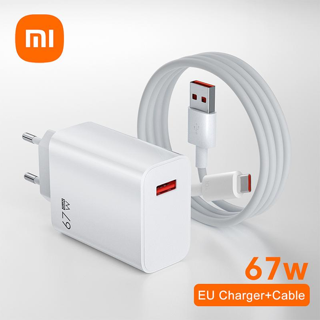 Зарядний набір для Xiaomi Fast Charge 67 Вт + кабель USB - Type-C 1м, Xiaomi, Redmi та Poco, Мережевий зарядний пристрій, бл