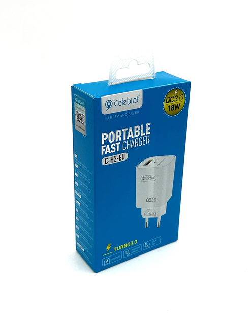 Зарядний пристрій CELEBRAT C-H2-EU 18W Turbo QC3.0 1USB Біле