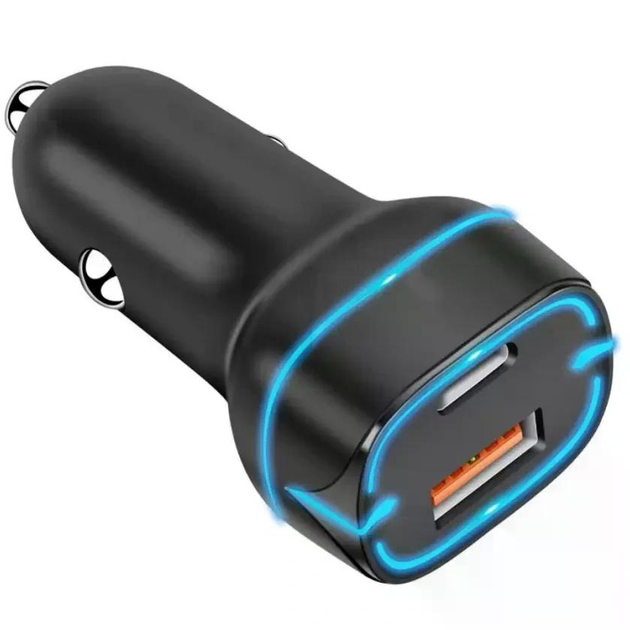 Зарядка в прикурювач із підсвіткою USB/USB Type-C 38w (002-64958) допомога водію автотовари