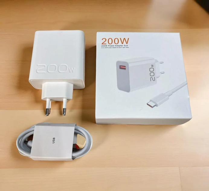 Потужний адаптер USB 200 W з кабелем USB-C для швидкого заряджання пристроїв 9919
