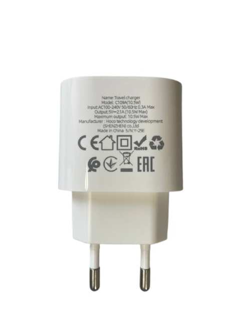 Зарядний адаптер Hoco C109A з одним USB-портом, White
