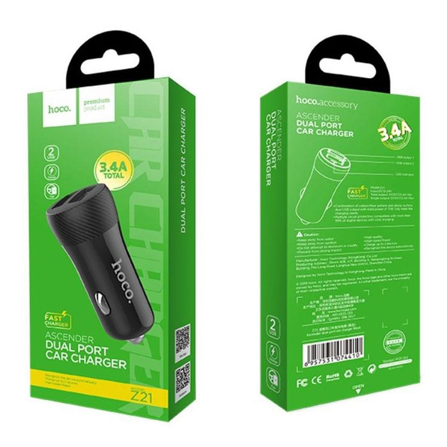 Автомобільний зарядний пристрій USB, Z21, hoco. (USB х 2, 3.4A), FAST CHARGER