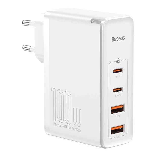 Адаптер мережевий BASEUS GaN2 Pro Quick Charger 2USB/2Type-C, QC/PD, 100W, 5A|(CCGAN2P-L02) white