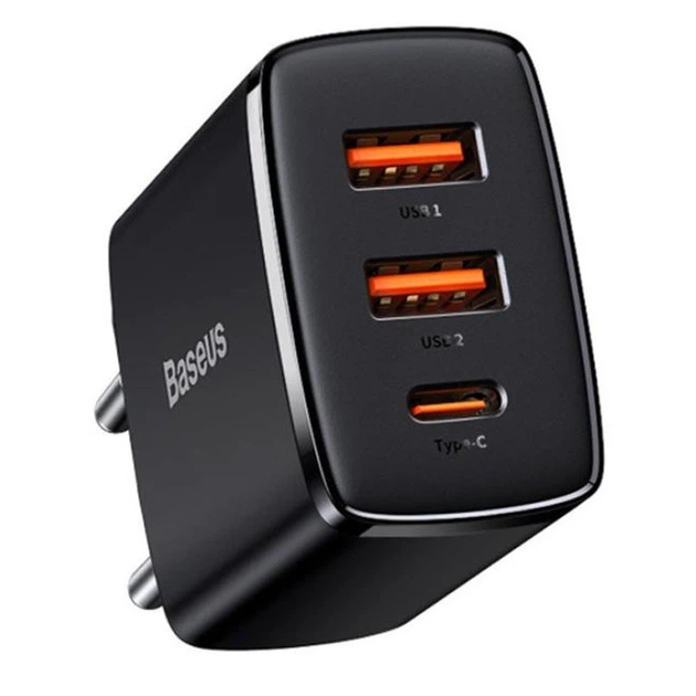 Мережевий зарядний пристрій BASEUS Compact Fast Charger 30W 2USB+Type-C 3A Black