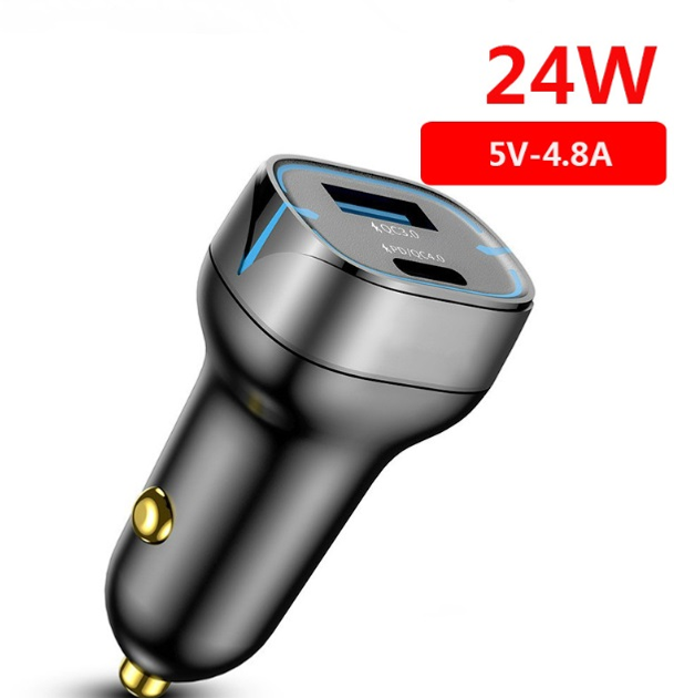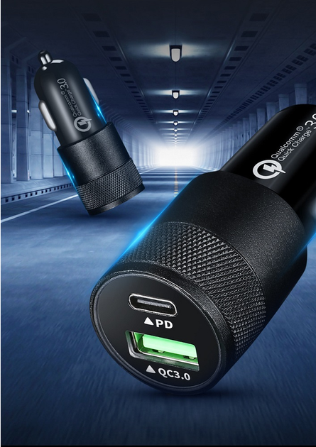 AЗП 12/24V 1USB-1Type-C 2,4А 22.5W.PD20W. QC3.0 P30 (Mini) метал