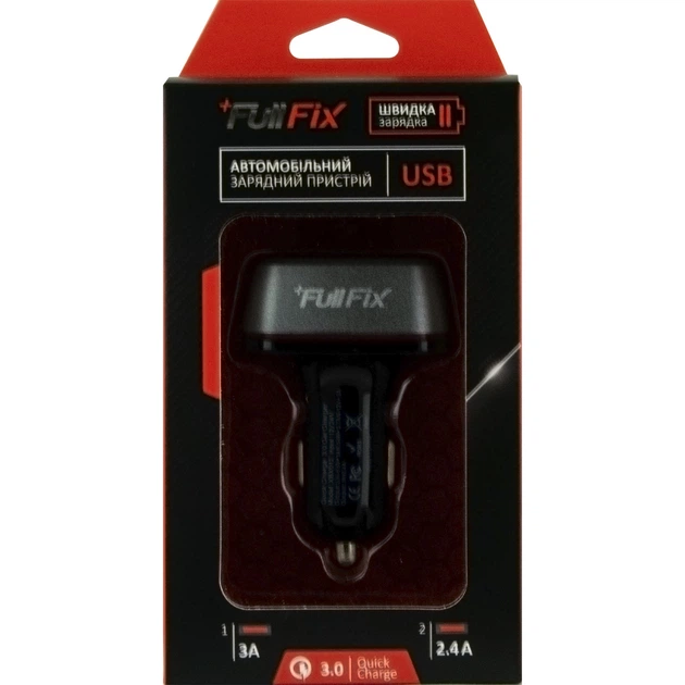 Автомобільний зарядний пристрій FullFix 3А/2.4А (2 USB) (EL001) (6901802021337)