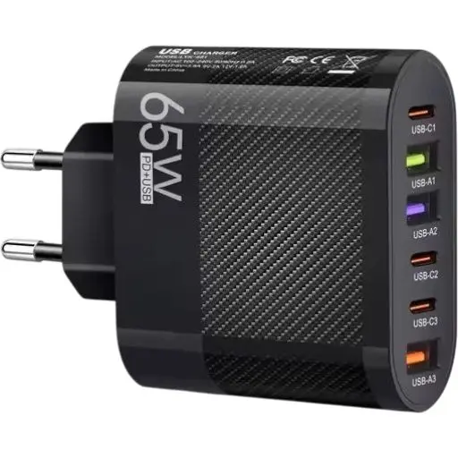 Зарядний пристрій живлення живлення Gan 65 Вт USB Type-C адаптер для заряджання Чорний