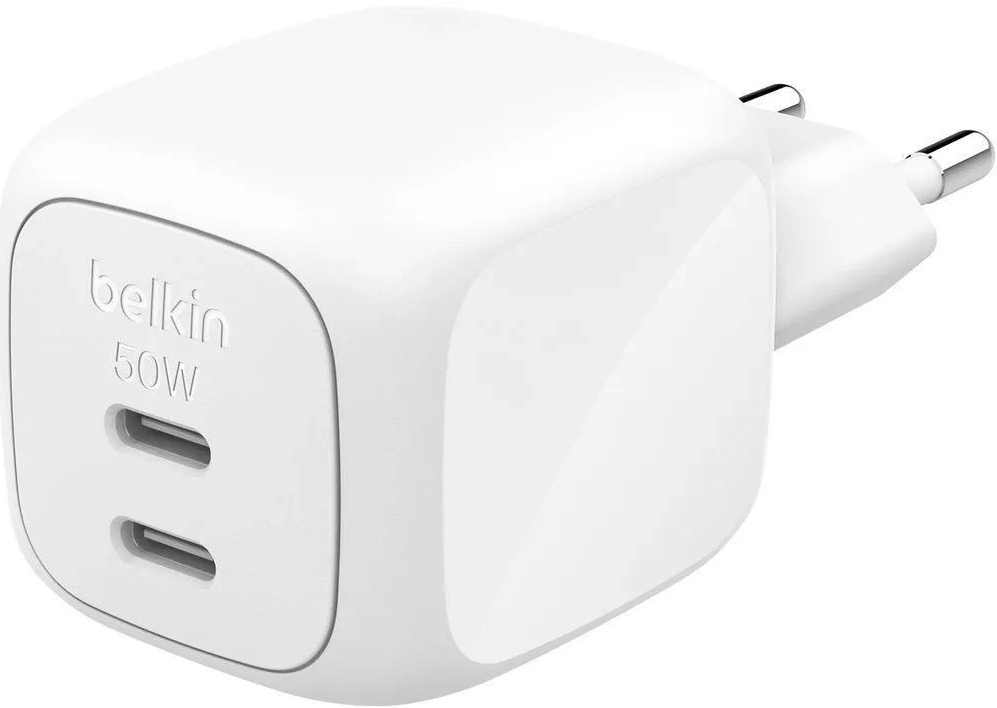 Ун. МЗП Belkin 50Вт 2хUSB-С GAN PD PPS, білий