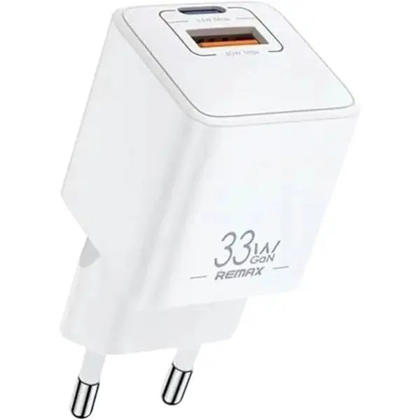 Зарядний адаптер GaN швидка зарядка 33W Remax RP-U26 PD+QC 1xType-c 1xUSB Білий