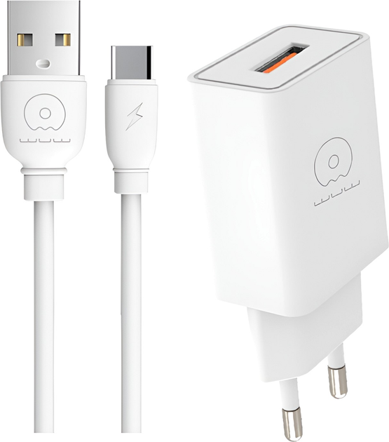 Мережевий зарядний пристрій WUW T56 2A White + Кабель USB-USB-C 1 м White (37370r)