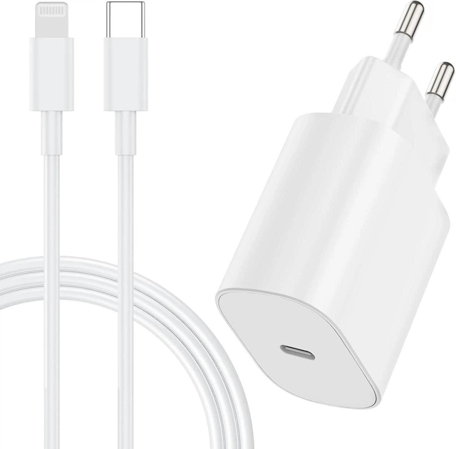 Швидкий зарядний пристрій для iPhone 13/12/11/14 Pro Max/X/XR/XS/8/Mini/iPad Type-C to Lightning 20W, кабель 2м, білий