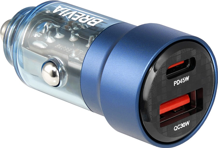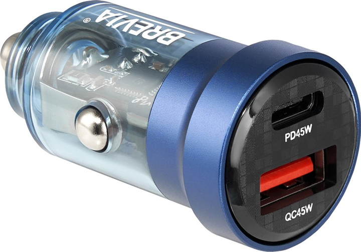 Автомобільний зарядний пристрій Brevia ePower DualCharge 45W 1xUSB-C+1xUSB-A Transparent Blue (46545CABL)