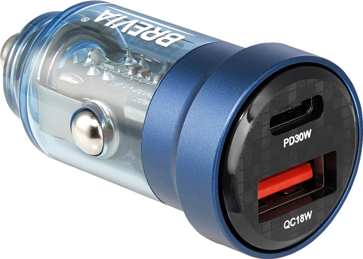 Автомобільний зарядний пристрій Brevia ePower DualCharge 30W 1xUSB-C+1xUSB-A Transparent Blue (46530CABL)