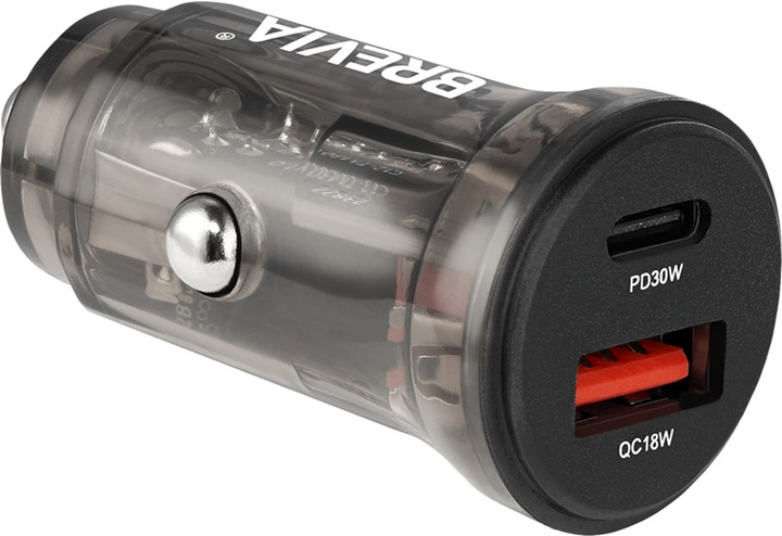 Автомобільний зарядний пристрій Brevia ePower DualCharge 30W 1xUSB-C+1xUSB-A Transparent Black (46130CAB)