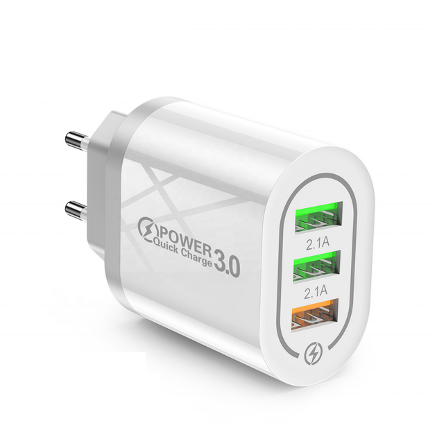 Зарядний пристрій для телефона QC3.0 18W 3xUSB швидка зарядка смартфону USLION UC3734 (BK-373) White