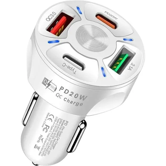 Автомобільний зарядний пристрій No Brand CWa 2USB 2Type-C PD20W QC 3.0 White (3650552)