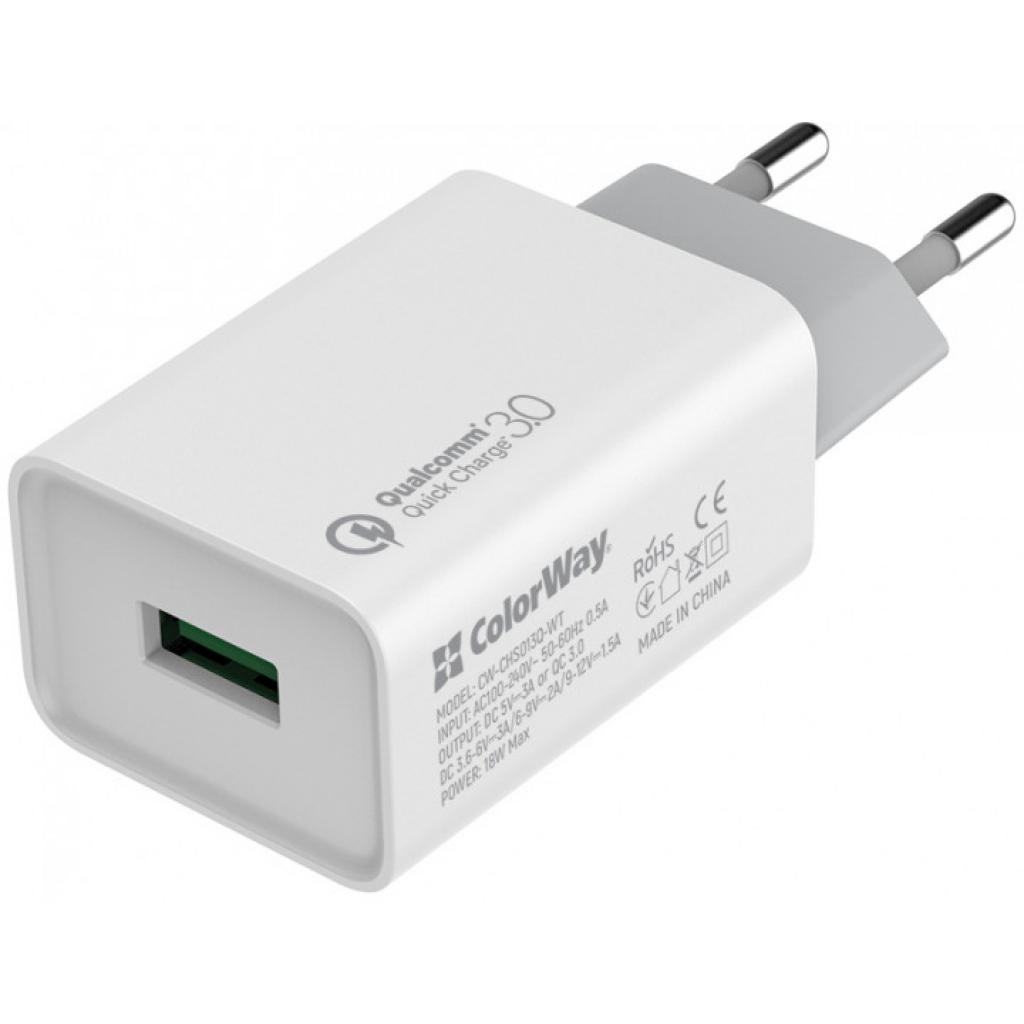 Зарядний пристрій ColorWay 1USB Quick Charge 3.0 (18W) (CW-CHS013Q-WT) CW-CHS013Q-WT