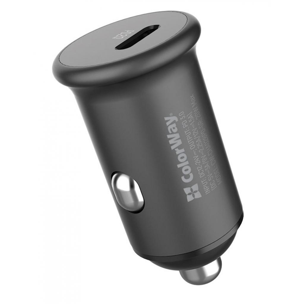 Зарядний пристрій ColorWay 1USB Car (PD USB Type-C (20W) Gray (CW-CHA028PD-GR) CW-CHA028PD-GR