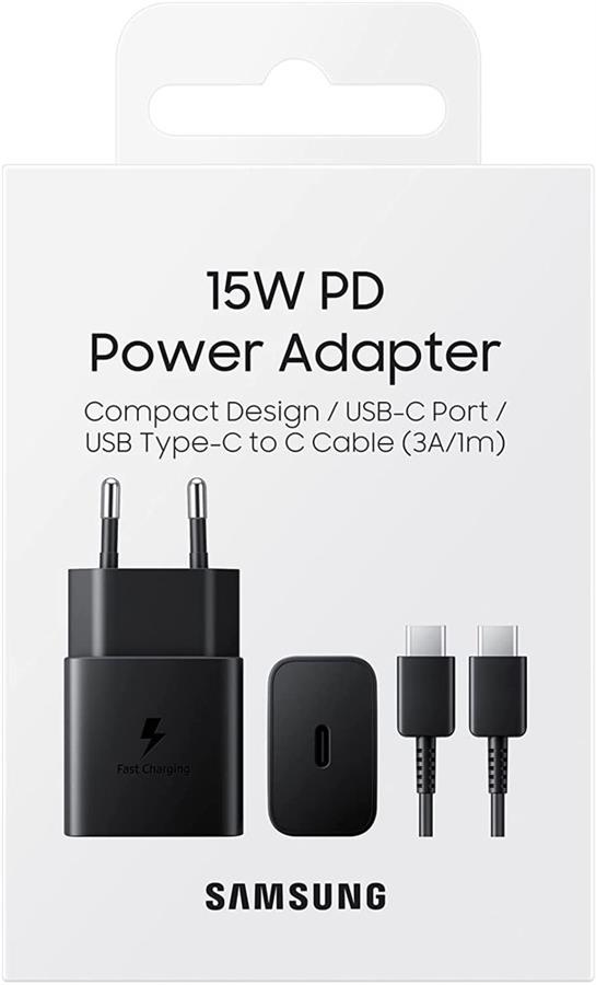 Мережева зарядка SAMSUNG 15W Power Adapter (w C to C Cable) EP-T1510XBEGEU / Чорна EP-T1510XBEGEU