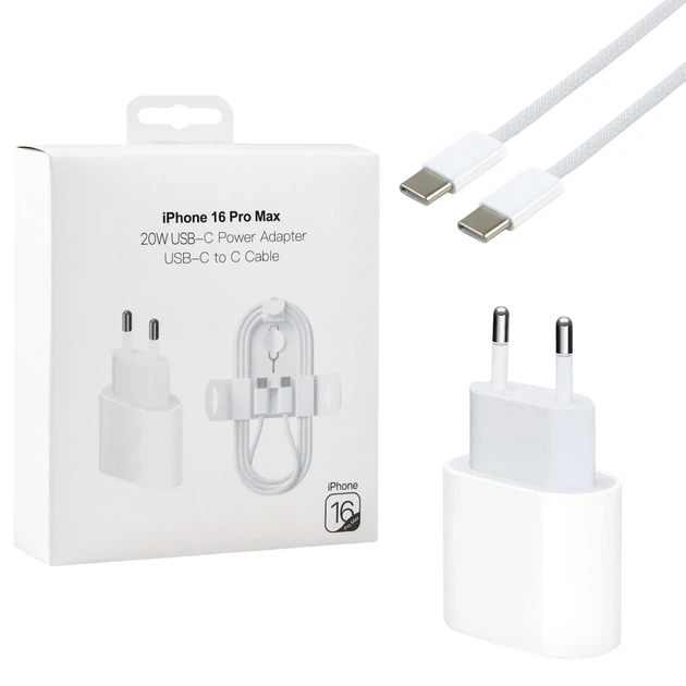 Зарядний пристрій Foxconn Power Adapter Type-C 20W + кабель Type-C тканинний 1м для Apple iPhone 16 Pro Max+ ключ для SIM-ка