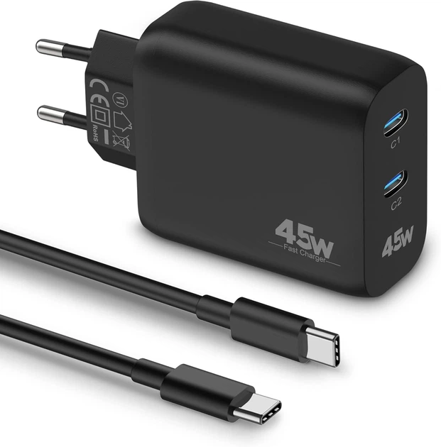 Зарядний пристрій CREAPICO Dual USB C потужністю 45 Вт та кабелем Type C