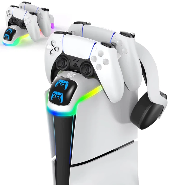 Подвійна зарядна станція для джойстиків PS5 Slim з індикацією LED кольору та кабелем Type-C чорна