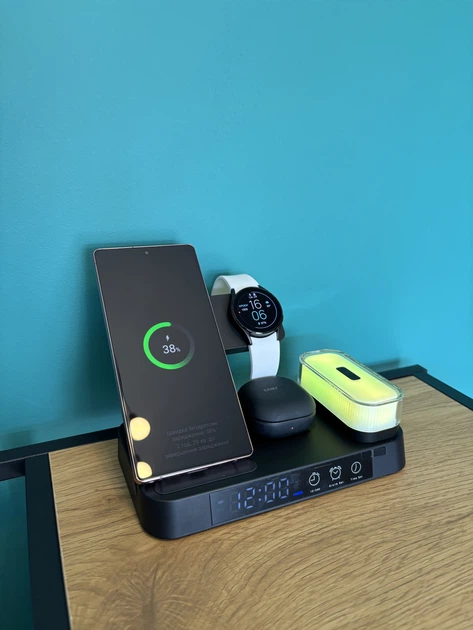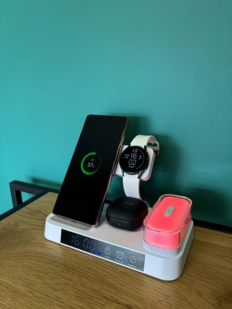 Бездротова зарядка для Samsung S-series Galaxy Watch Buds 30w 5 в 1 Samsung S37 Часи, Нічник, Будильник, Док станція, Бездро